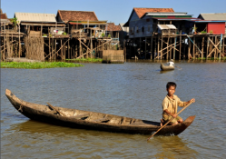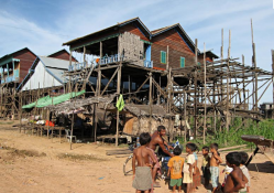 Kompong Khleang fishing community views always change according to seasons. Houses are built on stilts with a height upon on flood peak of the lake.